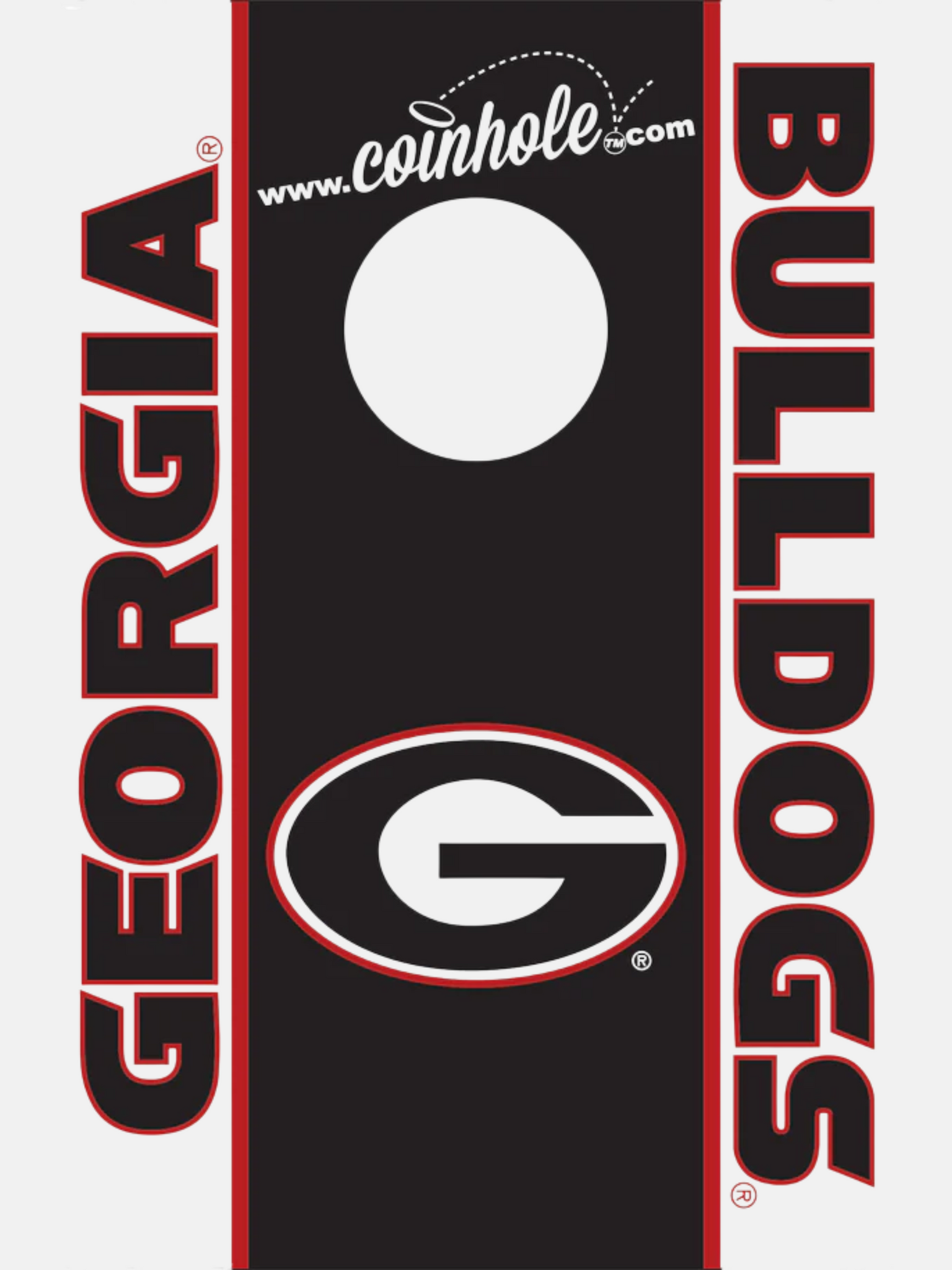 Enjoy a game of Coinhole® on this handmade set of University of Georgia Coinhole® boards. Coinhole® is the perfect gift for the whole family. Order now and let the fun begin!